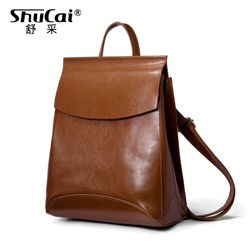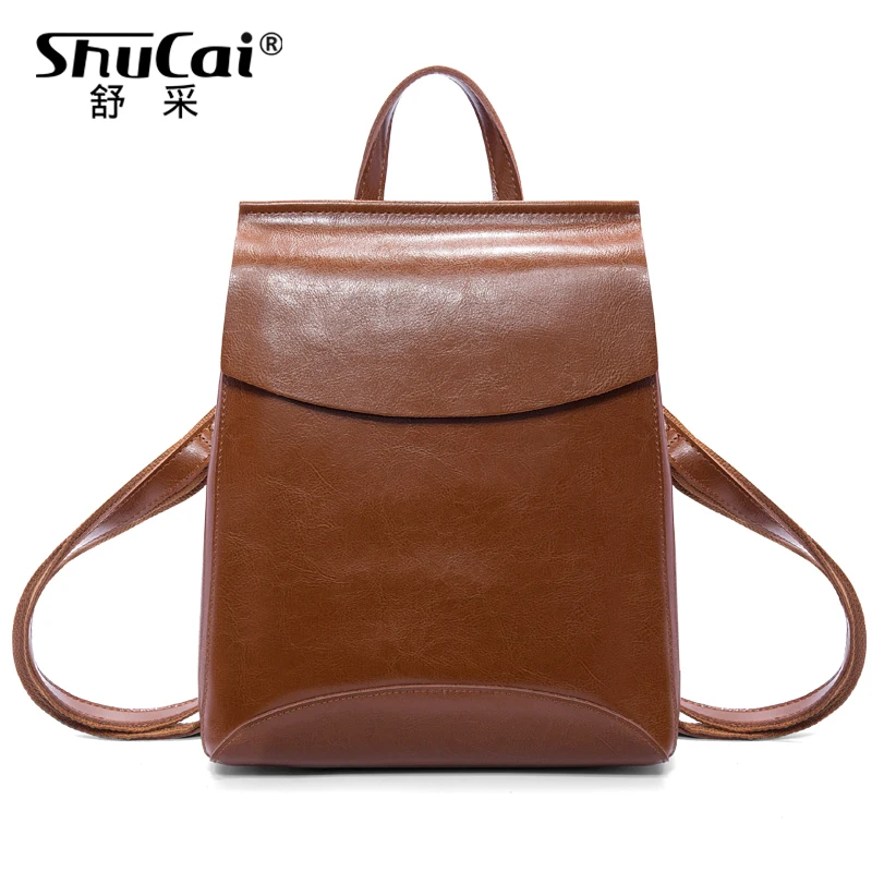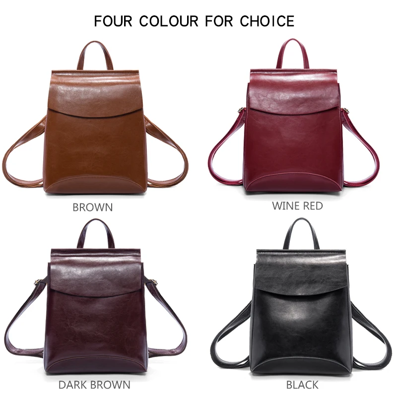 Special Product Backpack women genuine leather travel backpack solid color backpack school bags for teenage girls f