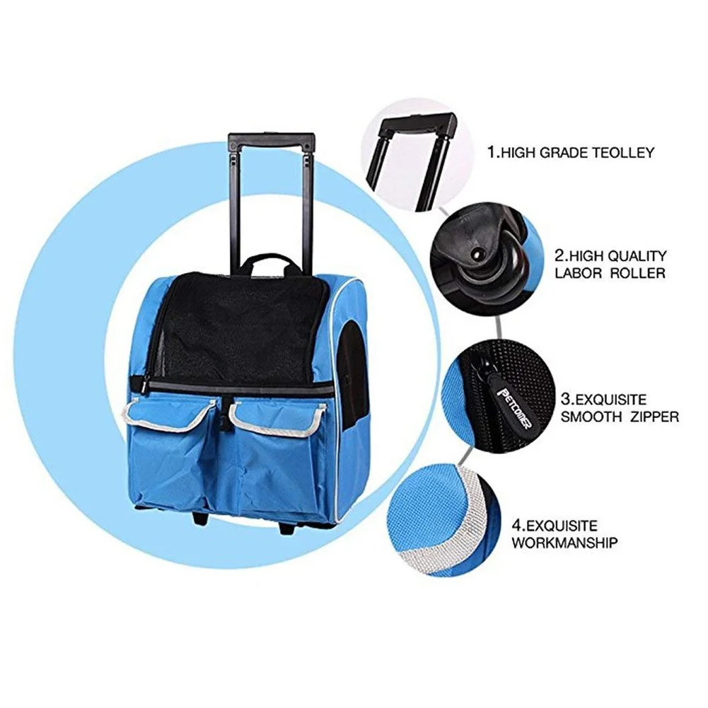 Special Pet Rolling Carrier Backpack Roller Dog Wheel Around Cat Luggage Bag Pet Travel Carrier Travel Tote