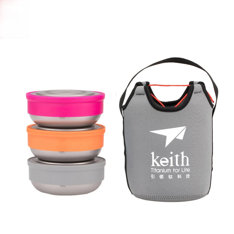 Get 3pcs Keith Titanium Bowl Insulated Lunch Travel Necessary Picnic Pouch Unisex Thermal Dinner Box Fo