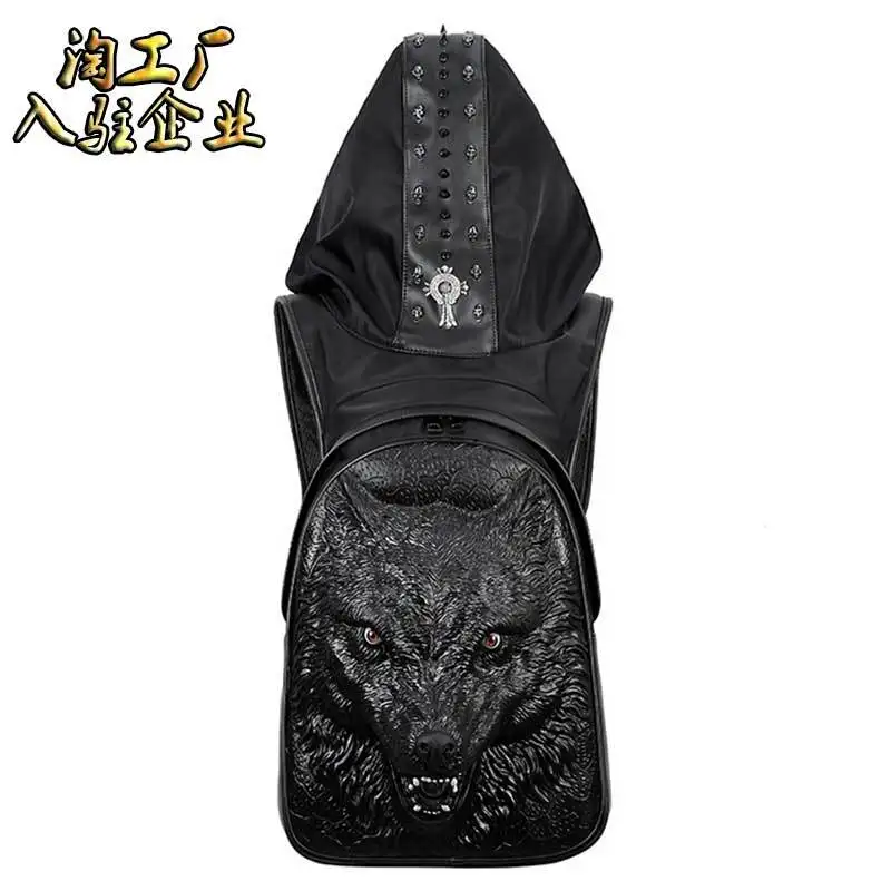 Get 2019 Creative-Hat PU Backpack 3D Fierce Wolf MEN'S AND WOMEN'S Outdoor Travel Computer Bag