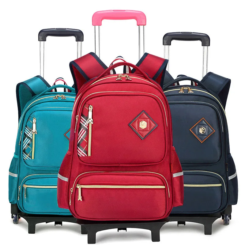 Get 2019 Waterproof Trolley School backpacks Girls Children School Bags Wheels Travel Bags Luggage Back