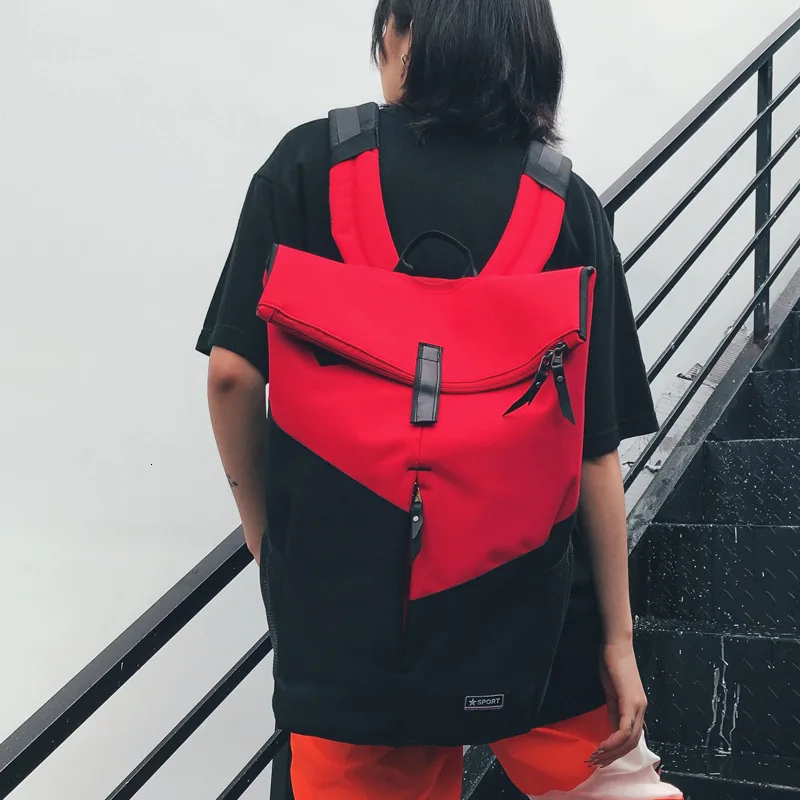 Limited Fashion trend personality contrast color backpack campus modern minimalist wild large capacity coup