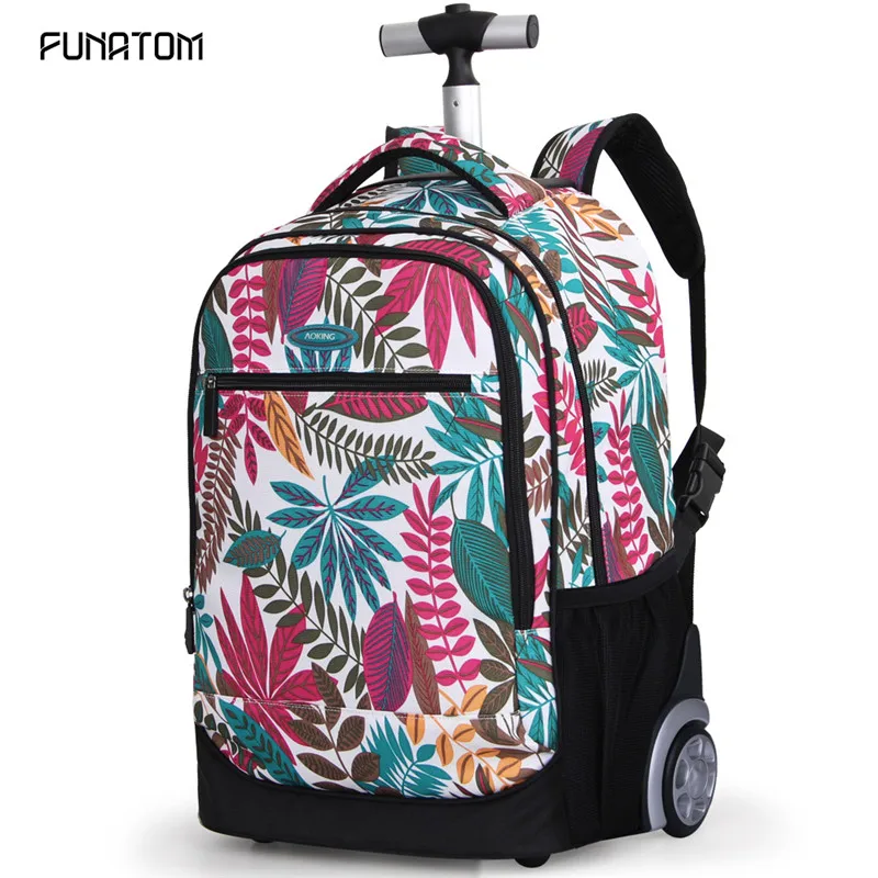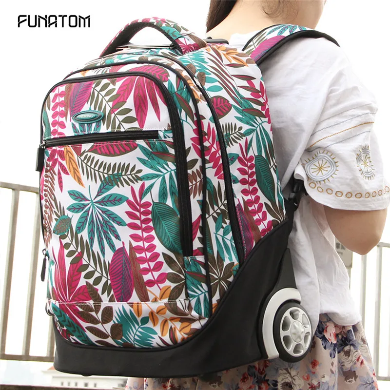 • Free Shipping Travel Backpacks with Wheels Women Fashion Travel Trolley Bags Luggage Trolley Girls School Backpac