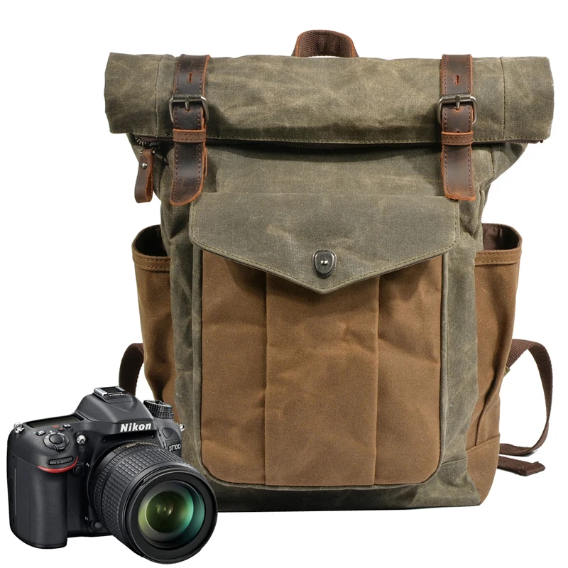 Get Photography Waterproof Canvas Retro Camera Backpack Men Travel Casual Bag Case for Canon Nikon Sony