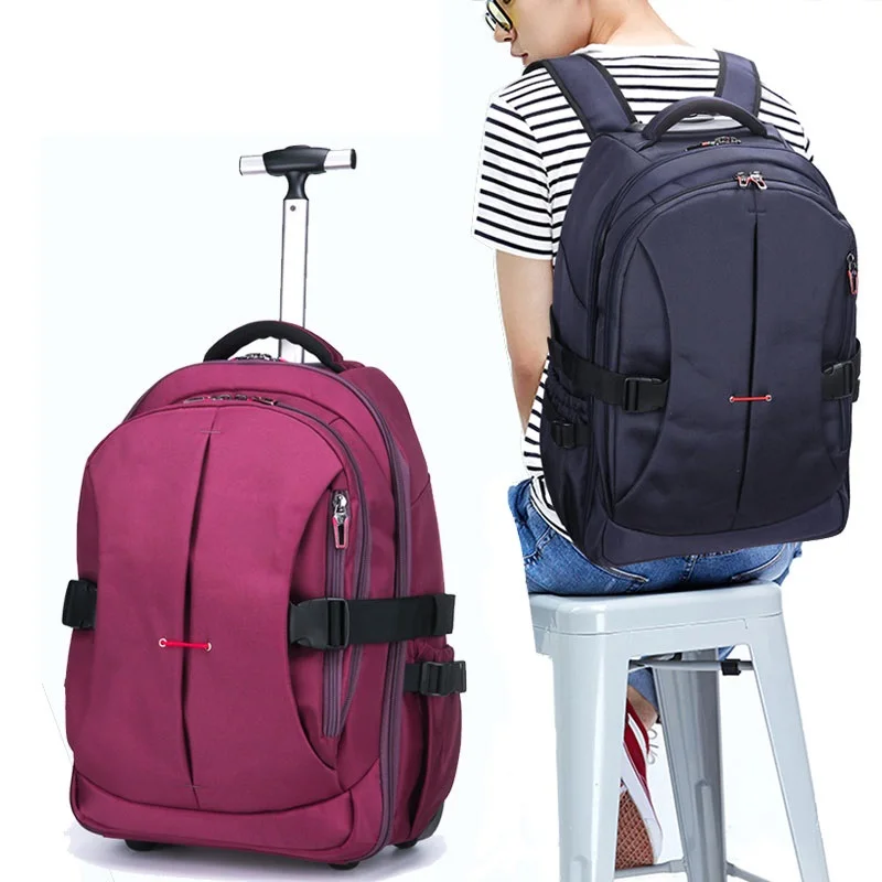 • Free Shipping Travel Backpacks with Wheels Women Fashion Travel Trolley Bags Luggage Trolley Girls School Backpac