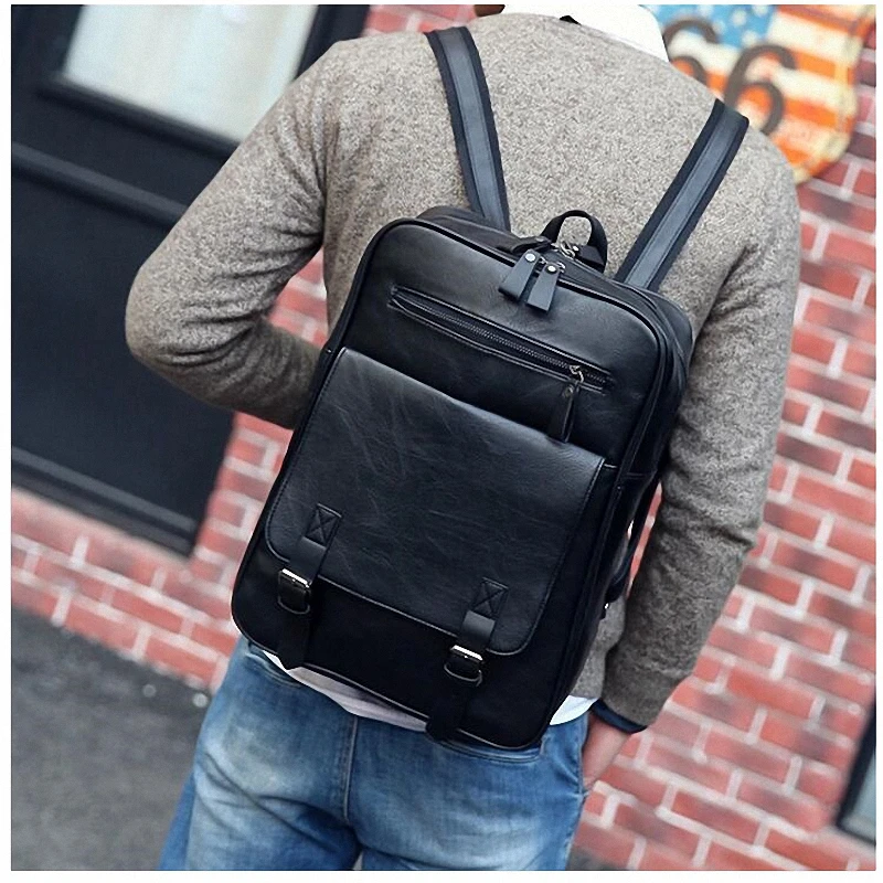 Home » backpack , hot product , travel » Cheap Man Casual Backpacks Travel Bag Pure Color PU Leather Men's Fashion Shoulder Bags teenage backpack