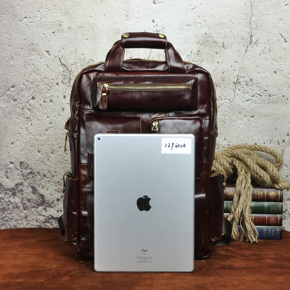 • Special New Large Travel Backpack Teenagers School Book Bag Cowhide Genuine Leather Male Leisure Bag Men La