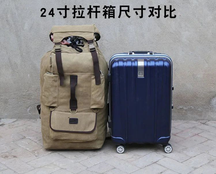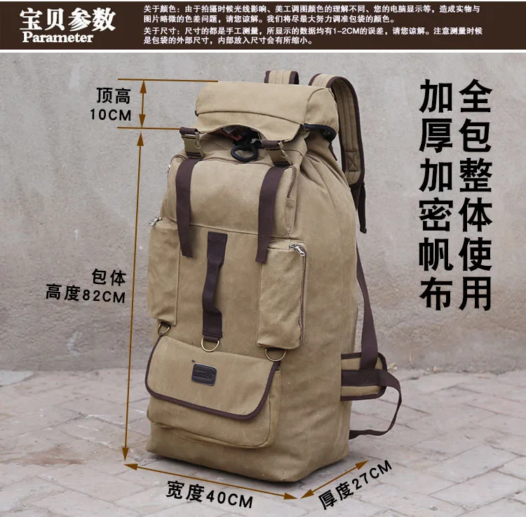 New 110 liters large capacity thick canvas canvas backpack men's big backpack long distance travel quil