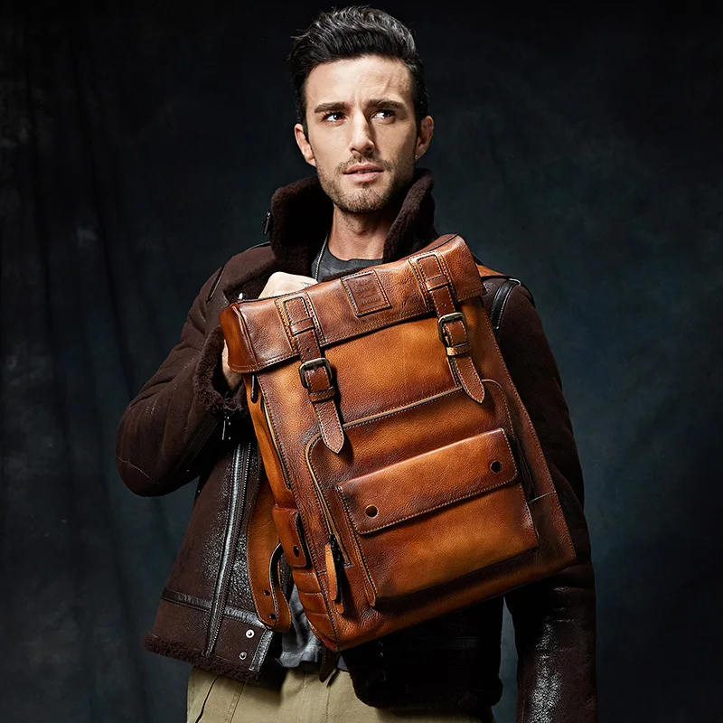 • Special New Large Travel Backpack Teenagers School Book Bag Cowhide Genuine Leather Male Leisure Bag Men La