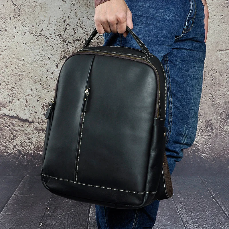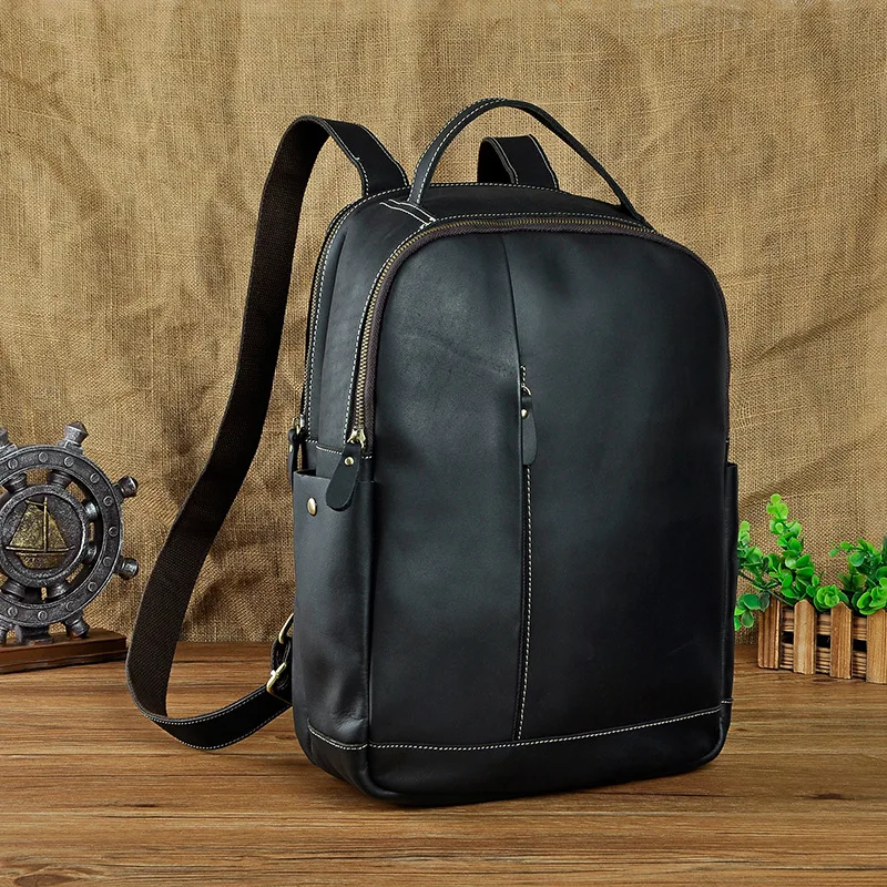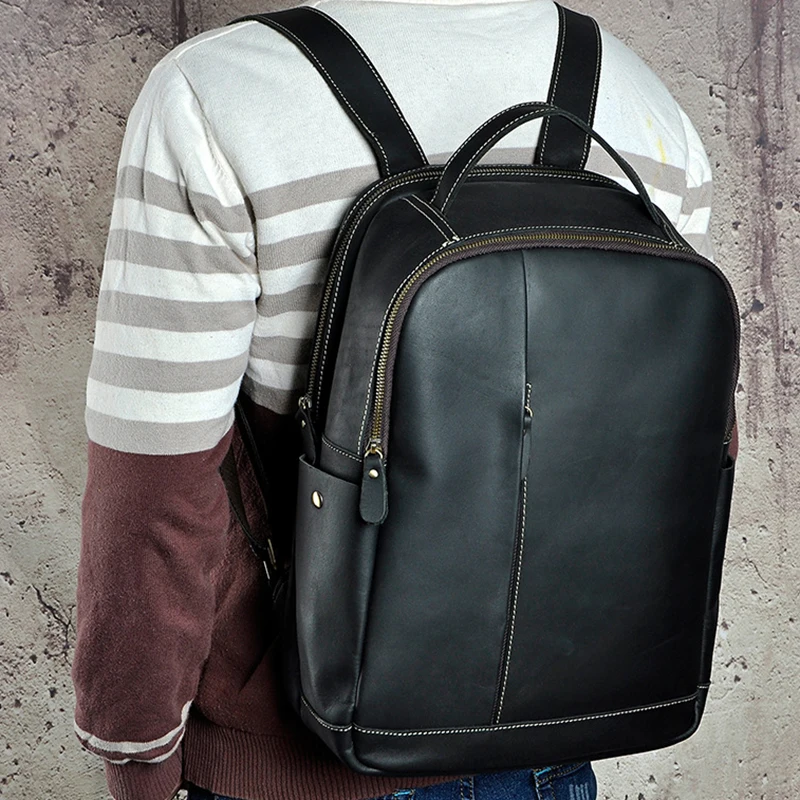 Best Men Crazy Horse Cowhide Backpack Travel Knapsack Vintage Large Capacity Genuine Leather 14'' Laptop