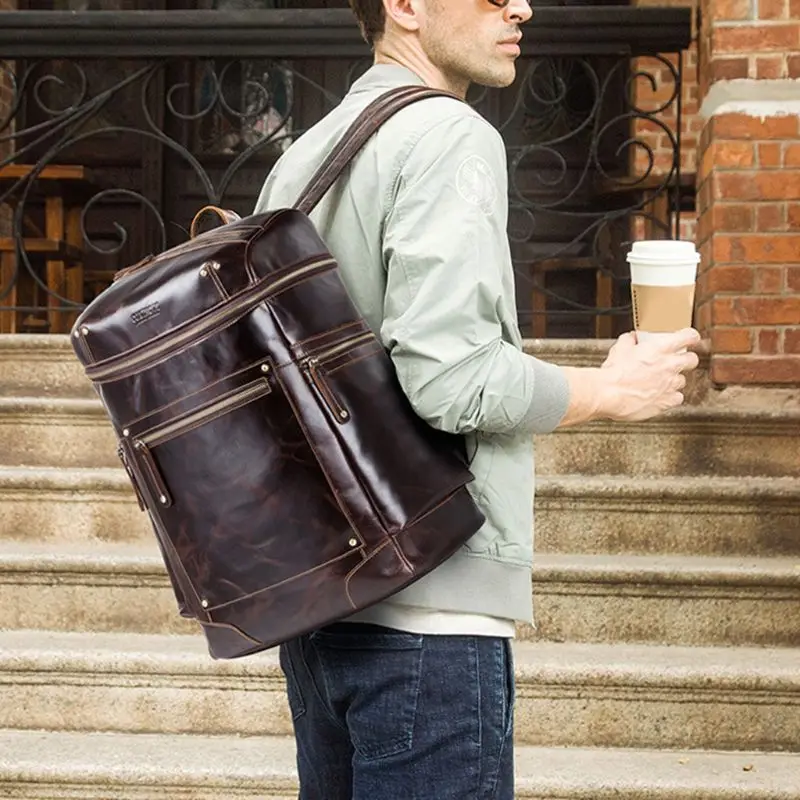 Best Men Genuine Leather Backpack Laptop Bookbag Casual Rucksack Large Capacity Travel Daypack Bagpack