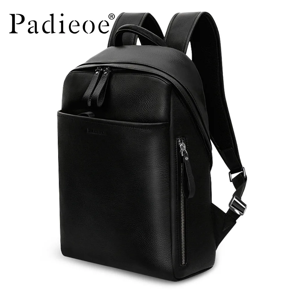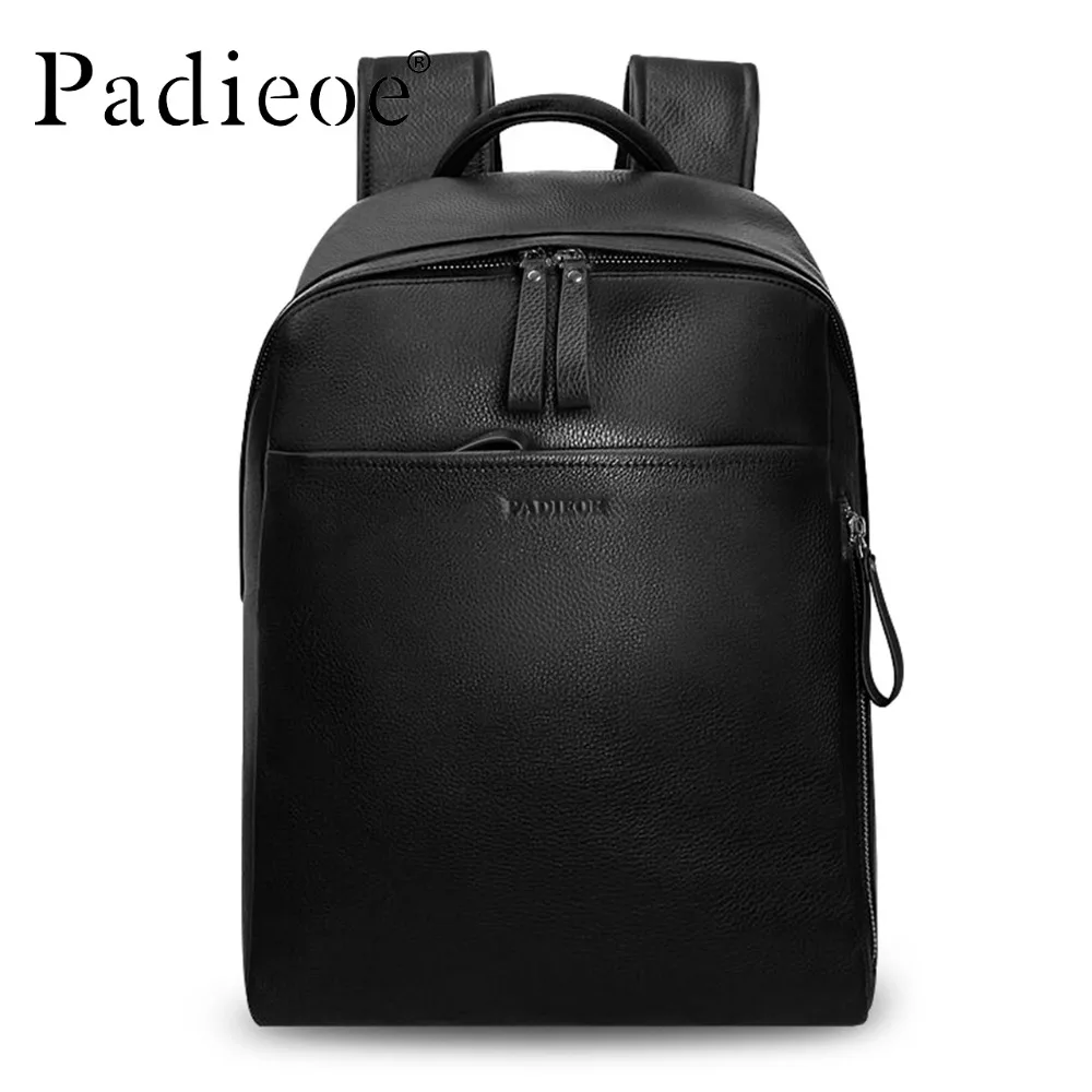 Best Padieoe Genuine Leather Backpack For Man Real Cowhide Large Male Backpack Double Zipper Travel Ruck