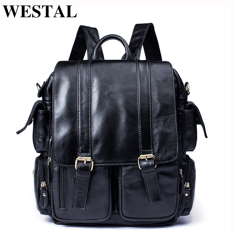 Discount WESTAL Men Backpack for 14inch laptop Backpacks Large Capacity Student Backpack Genuine Leather Tra