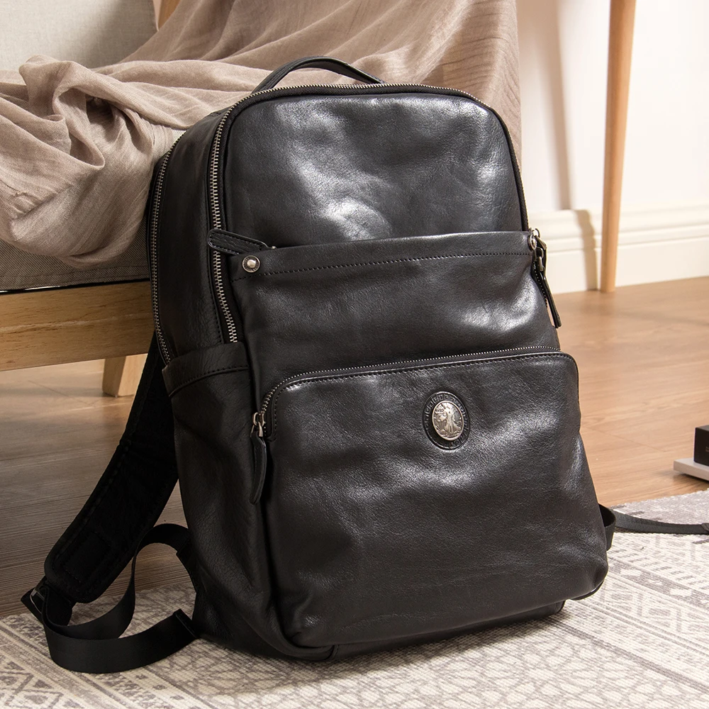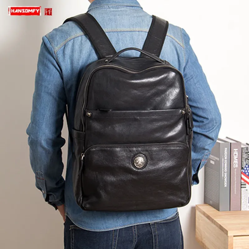 » Free Shipping Genuine Leather Men's backpack male business shoulder bag first layer cowhide large capacity 15.6 i