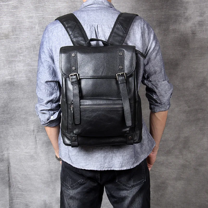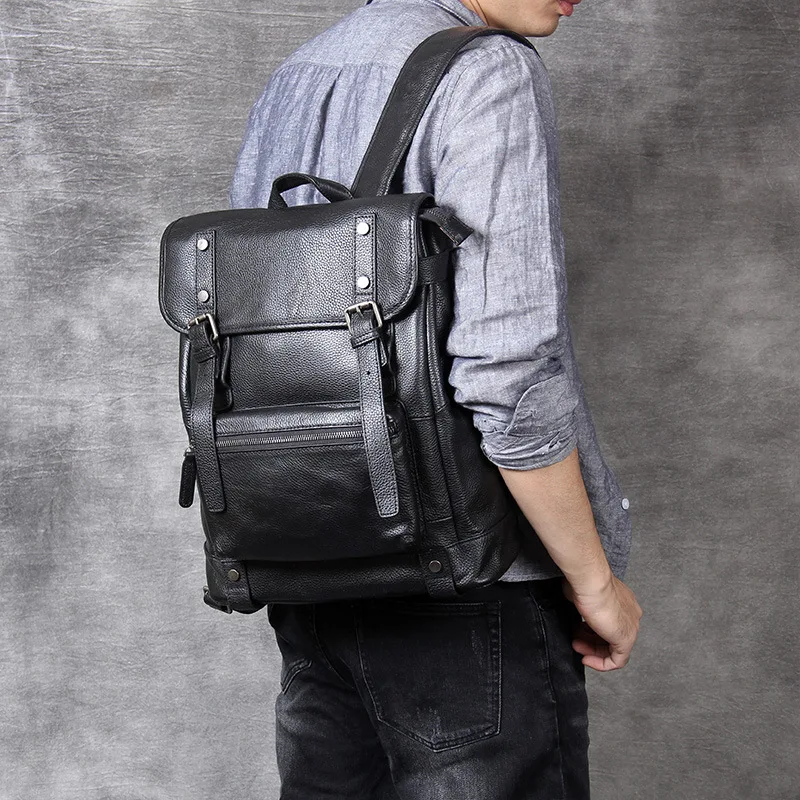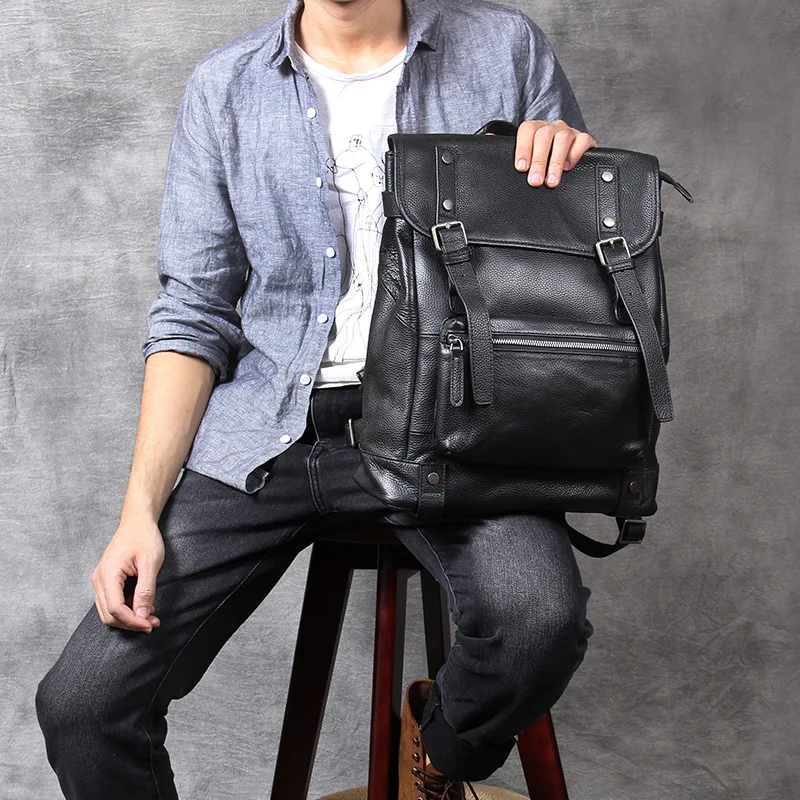 Get 100% Natural Skin Genuine Leather Black Backpack Men Large Capacity Laptop Backpack Male Travel Bag