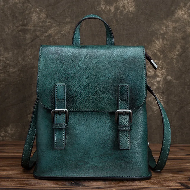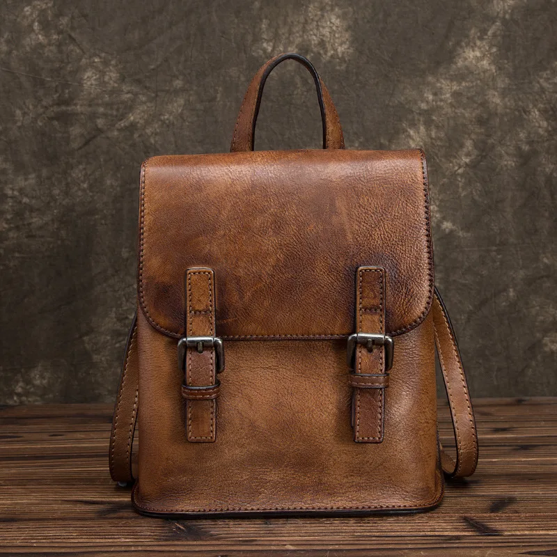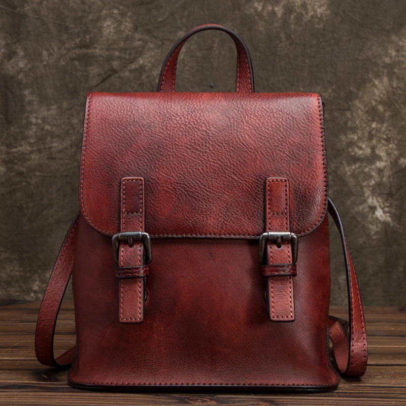 Get Genuine Leather Women Rucksack Brush Color School Knapsack Cowhide Retro Simple Travel Bag Multi-Ca