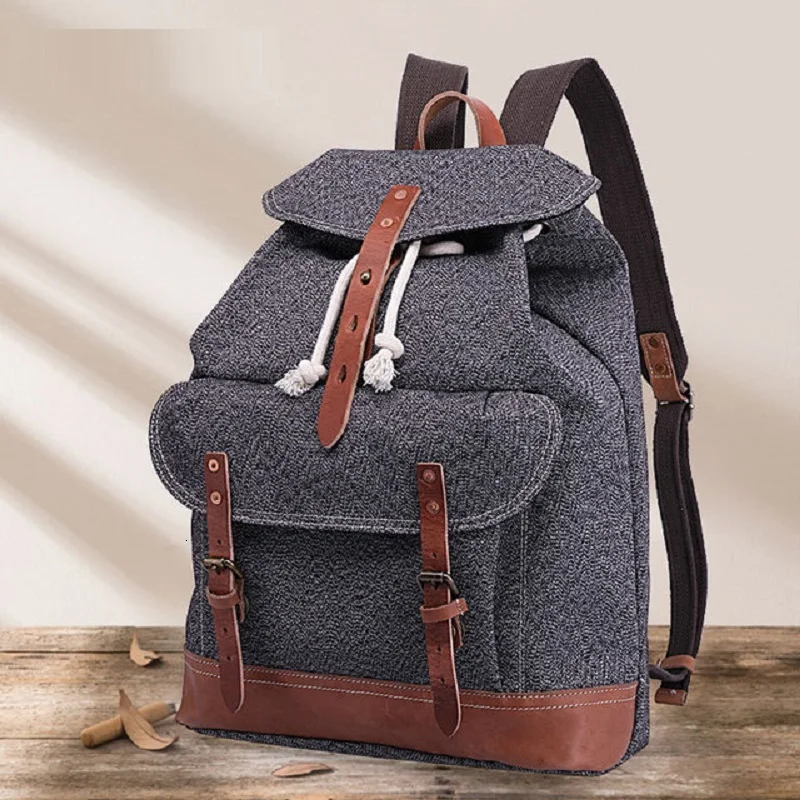 Limited Pepper Vintage M258 Salt Canvas Leather Backpacks for Men Laptop Daypacks Wear-resisting Canvas Ruc